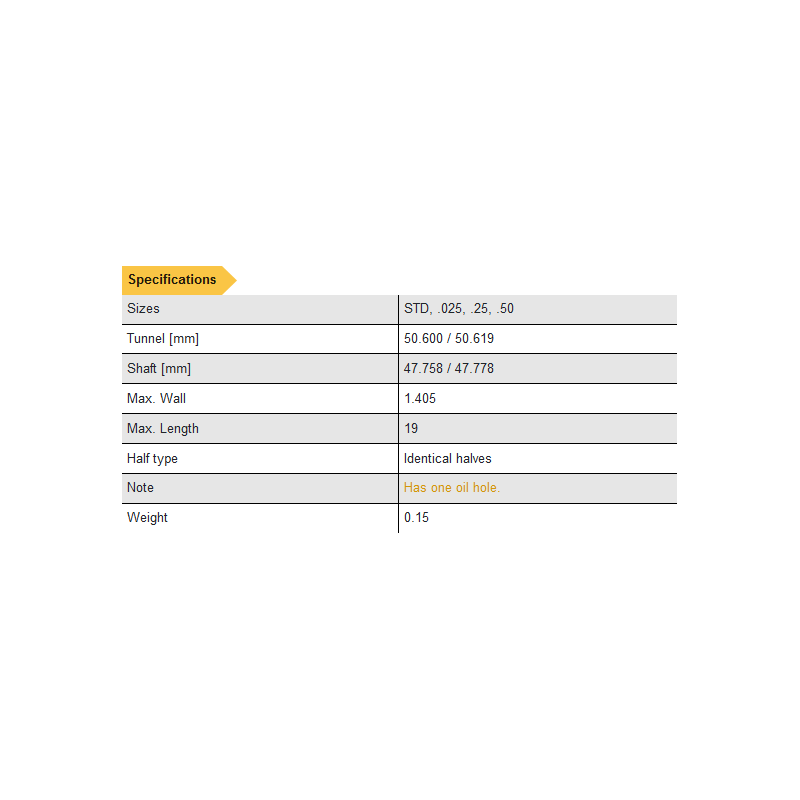 | Notes | Bearing has 1.65mm oil hole at crown | |