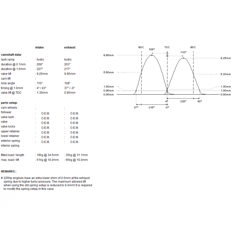 VAG 1.8T 20V bolt-on Sportnockenwellensatz 268°/263° 9.25mm/9.95mm