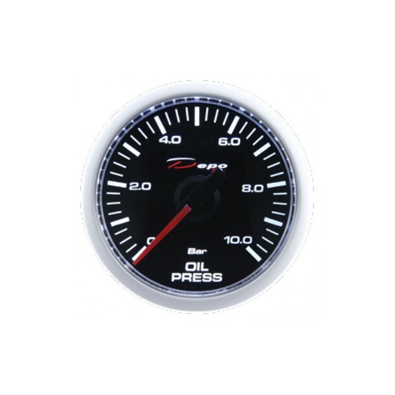 Depo Racing digital 52mm Öldruck (0 bis zu 10bar) mit schwarzes Zifferblatt & transparente Linse.