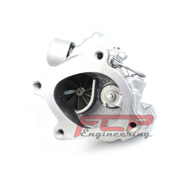 Cast iron single scroll turbine housing. High flow 9 blades turbine wheel.
