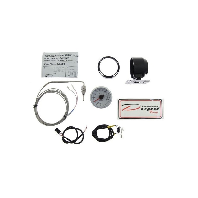 Depo Racing digital 52mm Abgastemperatur (EGT) Anzeige mit transparente Linse, weiße und blaue LED-Beleuchtung.