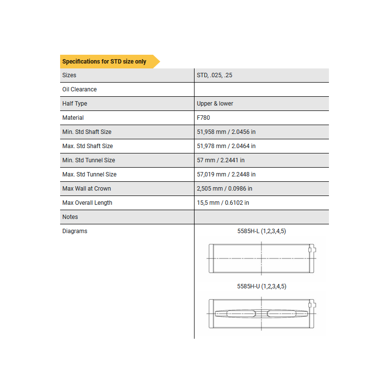 Audi / VW 2.0 16V ACL TSI EA888 Gen3 Race crankshaft main bearings 5M5585H-STD