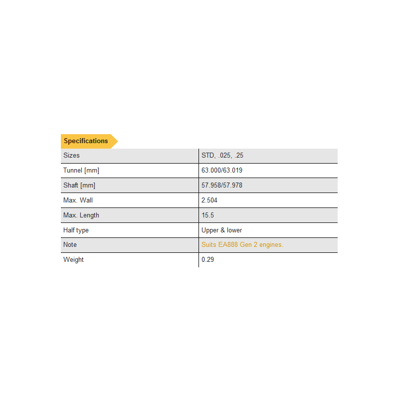 Audi / VW 2.0 16V ACL TSI EA888 Gen2 Race crankshaft main bearings 5M5563H-STD