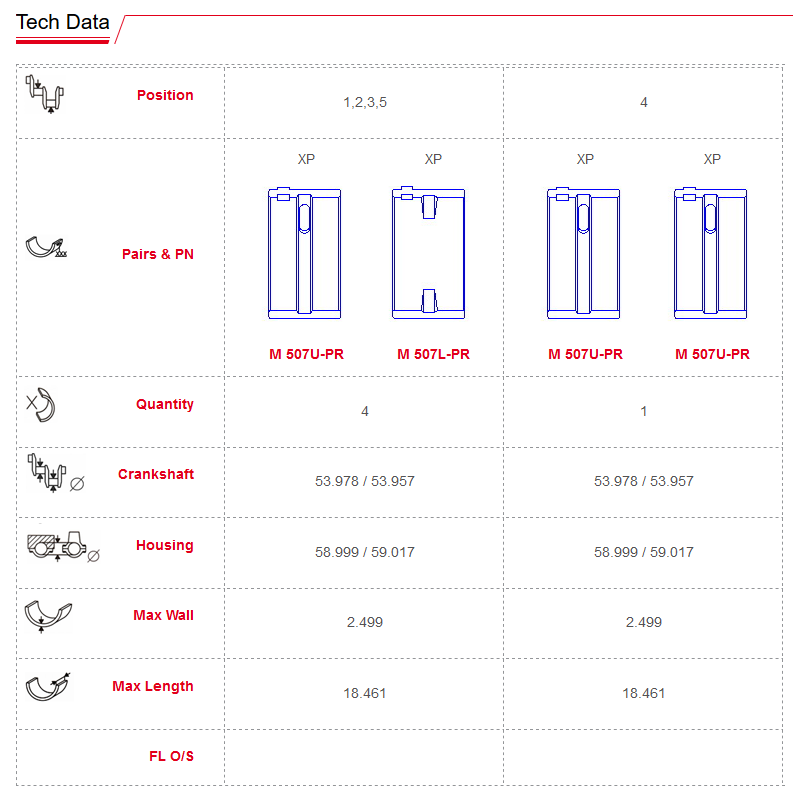 | Notes | Bearing has 1.65mm oil hole at crown | |