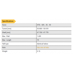 | Notes | Bearing has 1.65mm oil hole at crown | |