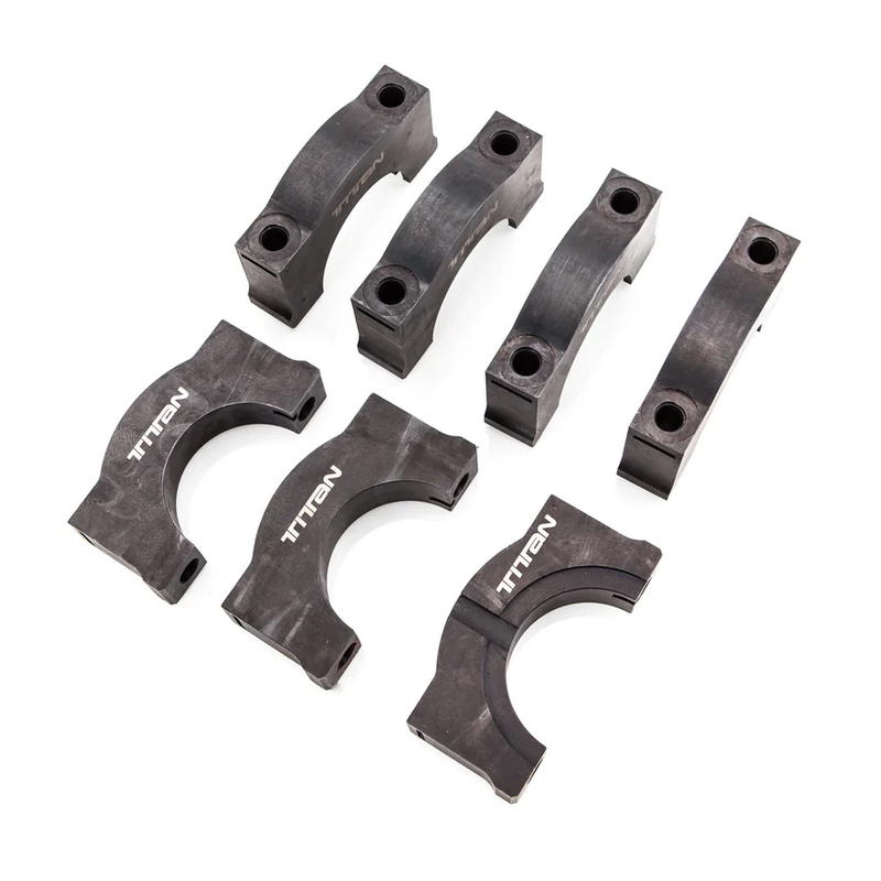 The Titan Motorsports billet main caps are precision machined from high tensile billet steel. We developed these main caps out of necessity for our 2JZ race program and soon found them to be applicable in most street engines. With the increased boost levels seen in single and larger twin turbo setups, the factory crank pushes down on the caps often leading to stress fractures and cracks. The factory main caps were not designed for the forces required when doubling and tripling the factory horsepower and torque levels. These caps are included in our short block and race engine packages and now available separately for those building their own engines.