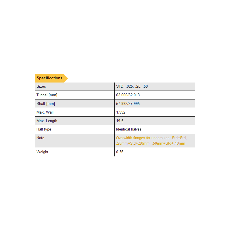 Opel 2.0 C20LET Z20LET ACL Race Series main bearings 5M2327H-0.25
