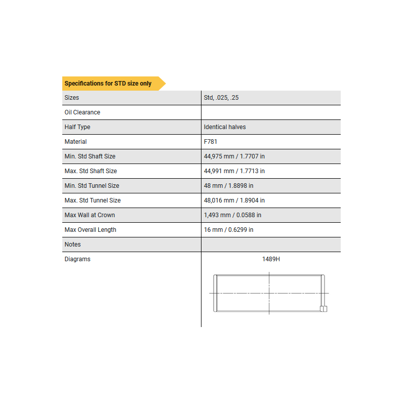 Part number 4B1489HX-STD (+0.001" extra clearance) ACL Race Series connecting rod bearings BMW M3 E30 - 2.0 (S14B20) Please check the measurements before placing order as you may need 4B1568HX bearings