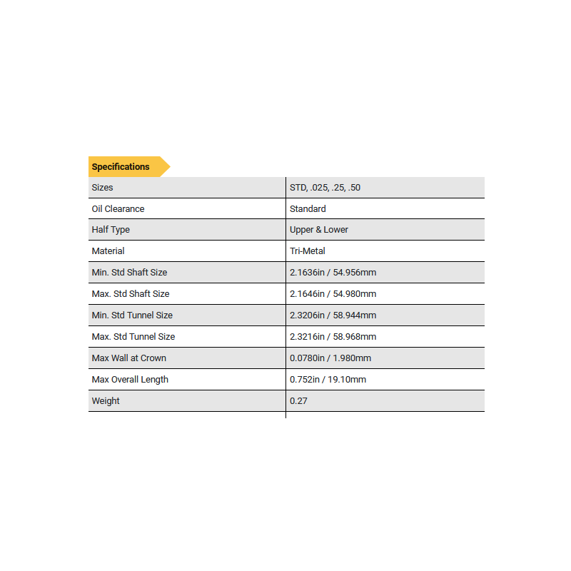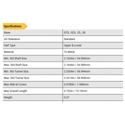 | Oil Clearance | Standard | + 0.001" Extra |