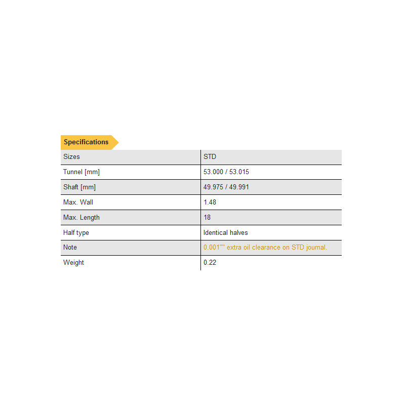 | Oil Clearance | Standard | + 0.001" Extra |