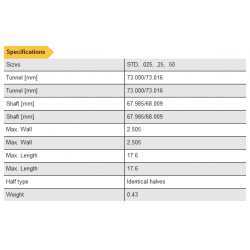 Max. Std Tunnel Size 2.8746in /73.016mm
