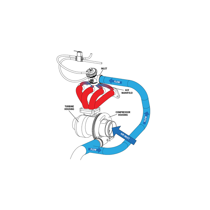 The ALV is a sealed twin chamber design with the top port being the primary control port, the spring is designed to open under vacuum conditions to allow for the air to bypass into the exhaust manifold, the lower chamber for twin port control methods, to control the valve irrespective of manifold pressure and shaft seal allows for leak proof operation.